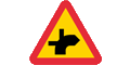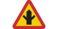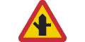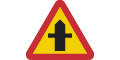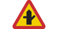Varning för vägkorsning där trafikanter på anslutande väg har väjningsplikt eller stopplikt