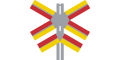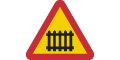 Varning för järnvägskorsning med bommar